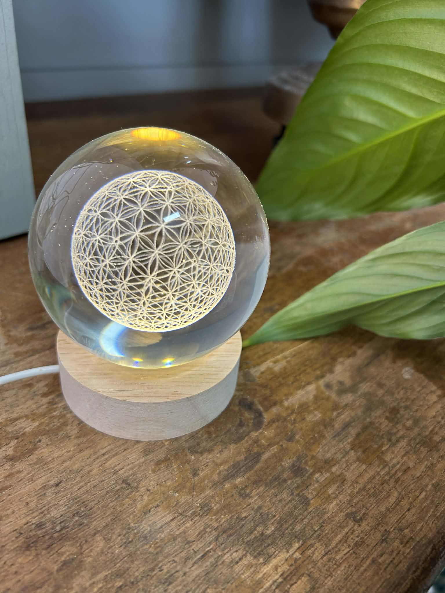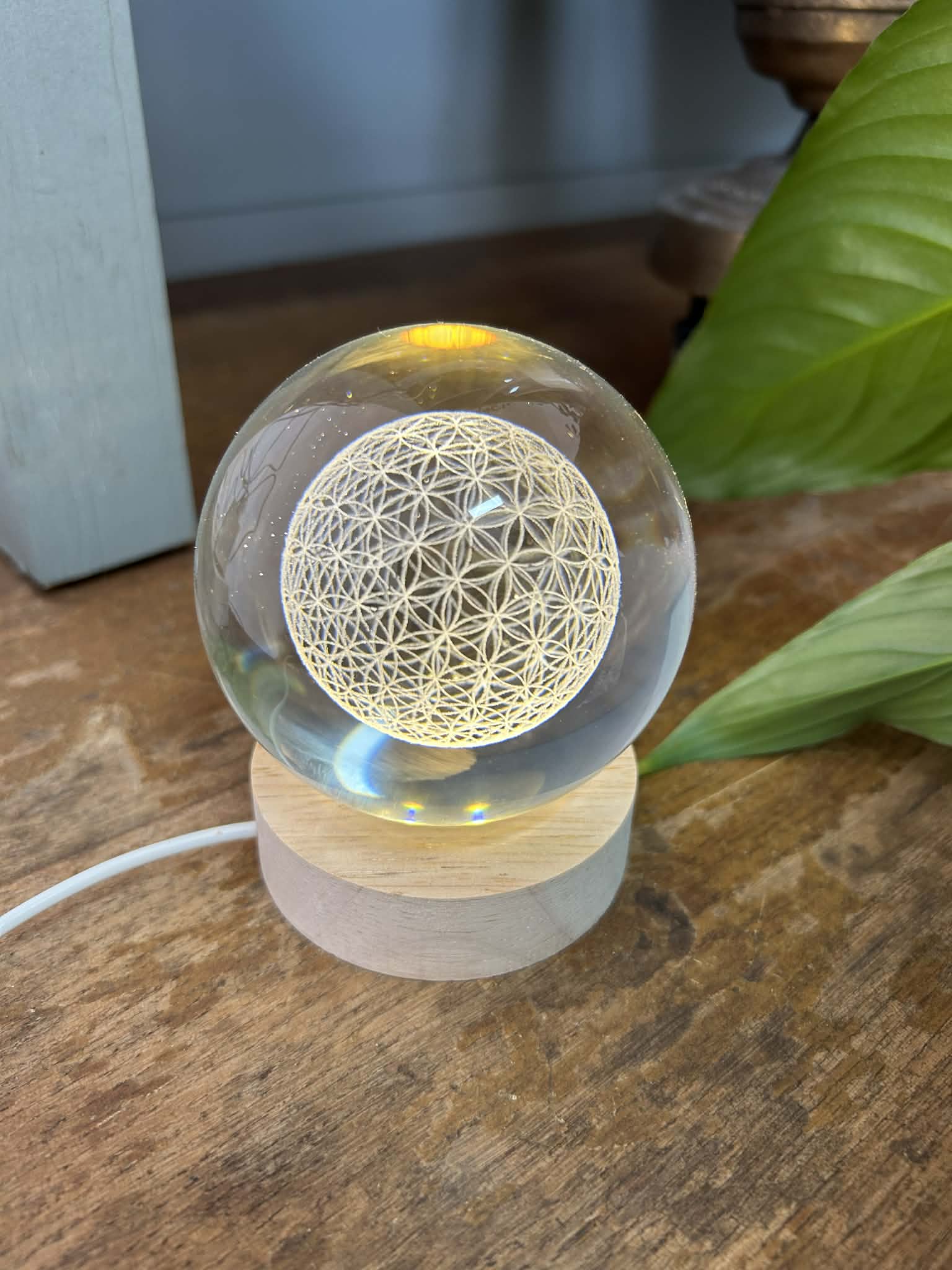 Apportez une touche d’élégance et de sérénité à votre intérieur avec cette magnifique boule décorative lumineuse. Réalisée en verre de haute qualité, elle renferme une fleur de vie finement gravé qui se révèle pleinement lorsque la base lumineuse s’allume.
